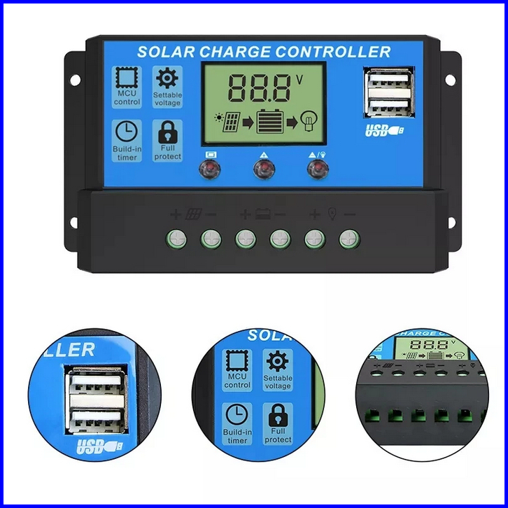 Taffware Solar Charger Controller Dual Usb 10a 12v 24v - Rbl-006a