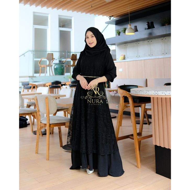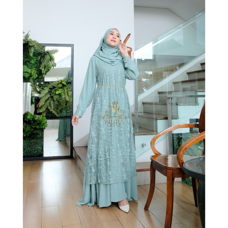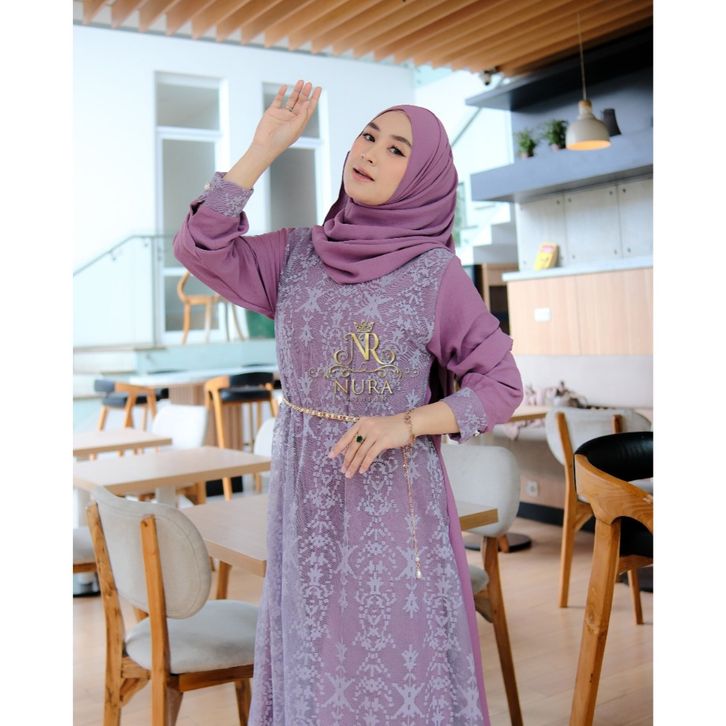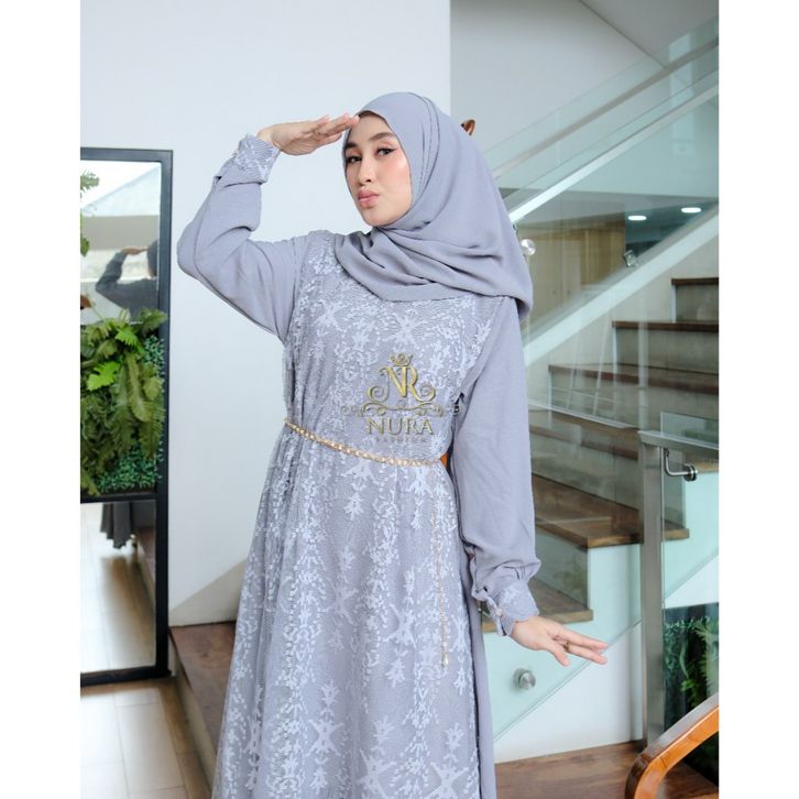 nurra gamis aluna sheeva wanita terbaru 2025 crinkle mix brokat dress kondangan free belt