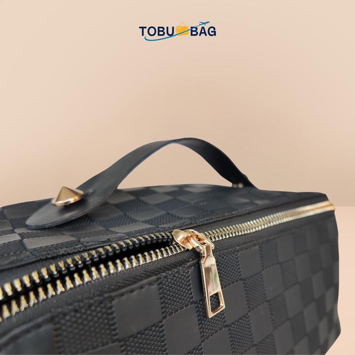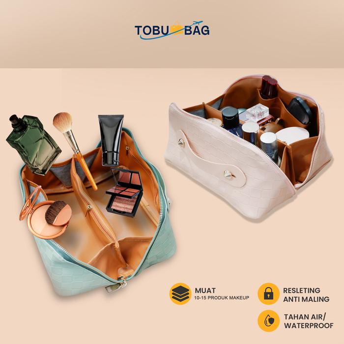 Tas Kosmetik Lattice Elegan untuk Travel - Organizer Makeup dengan Sekat Fleksibel untuk Wanita