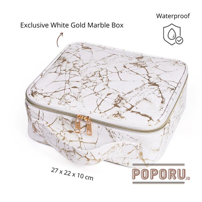 POPORU EXCLUSIVE WHITE GOLD MARBLE BOX - cosmetics bag organizer for make up - tas tempat kosmetik pouch koper kecil
