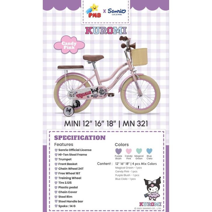 SEPEDA ANAK PEREMPUAN 12 16 1 CENTRUM 313 CLASSIC / CENTRUM 315 / PMB KUROMI ADA KERANJANG