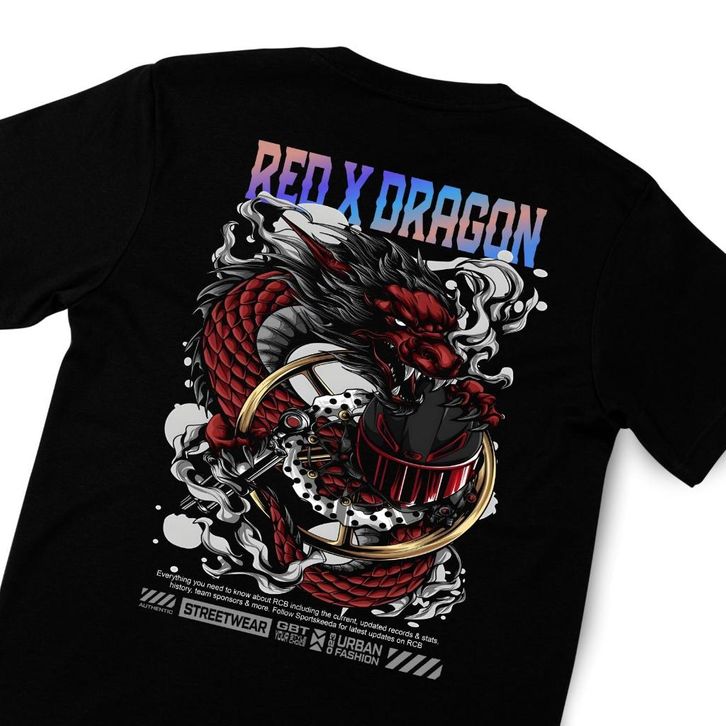 GABUT Baju Kaos Distro Remaja Dewasa Pria dan Wanita Cotton Combed 24s DTF Hitam RED X DRAGON