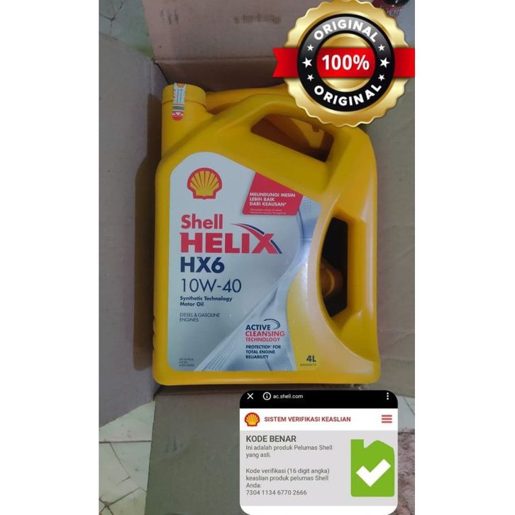 Oli Shell Helix HX6 10W-40 4L Orinal bare centang hijau