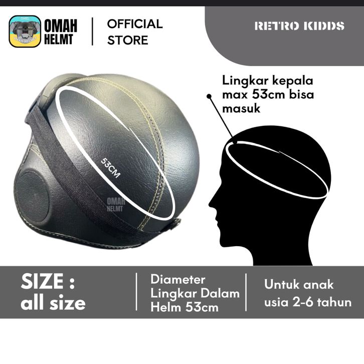 Helm Anak helm anak Original Helm Motor Anak Pororo Retro usia 2-6 Tahun Motif Polos kacamata