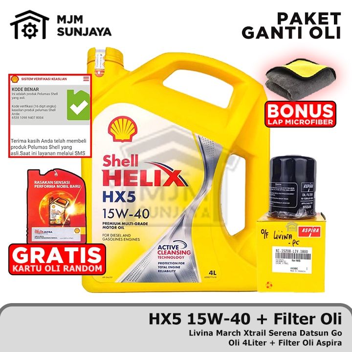 GRATIS FILTER OLI PAKET Ganti Oli Mesin Shell Helix HX5 SAE 15W-40 4 Liter ASPIRA Nissan Grand
