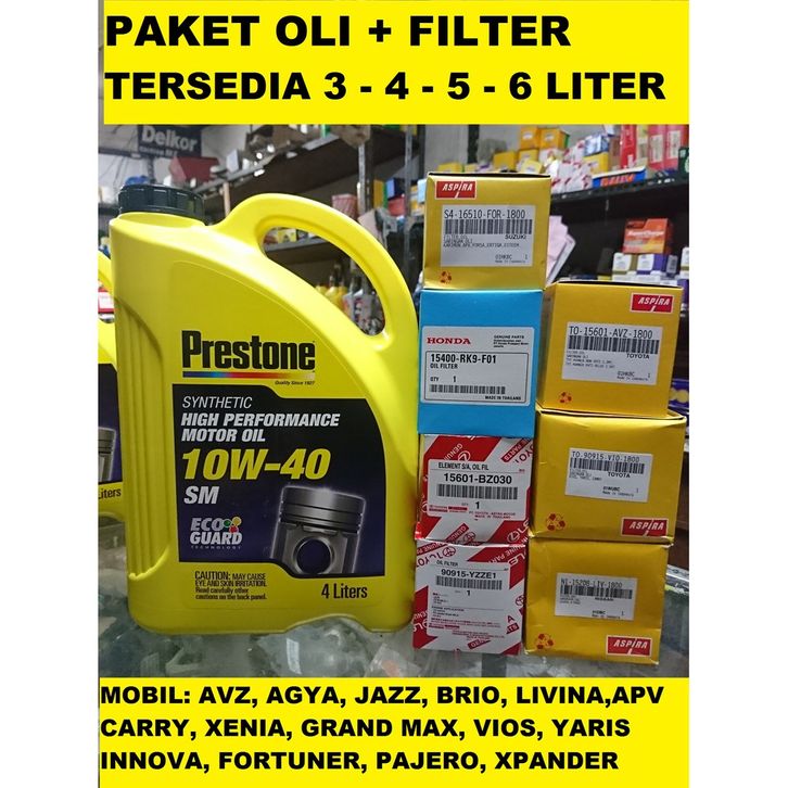 PAKET Oli dan Filter PRESTONE SAE 10W 40 Oli Mesin Bensin Mobil Innova Avanza Agya Jazz Brio Livina