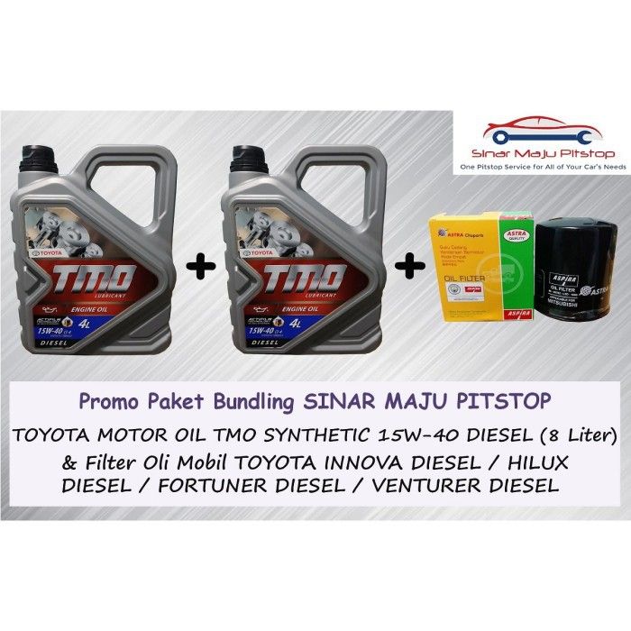 Paket Bundling Oli TMO Diesel 15W-40 Synthetic 8 Liter & Filter Mobil TOYOTA FORTUNER & HILUX DIESEL