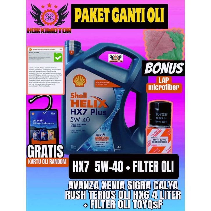 GRATIS FILTER OLI PAKET Ganti Oli Mesin Shell Helix7 SAE 5W-40 4 Liter TOYQSF AVANZA XENIA SRA CALYA