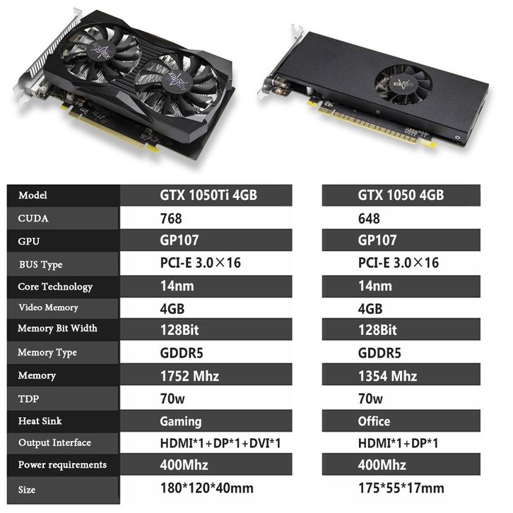 AISURIX VGA Card GTX 1050Ti 4GB Graphics Card GDDR5 GTX 1050 2GB Memory gaming VGA Card 128bit PCI Express X16 3.0 DVI+D