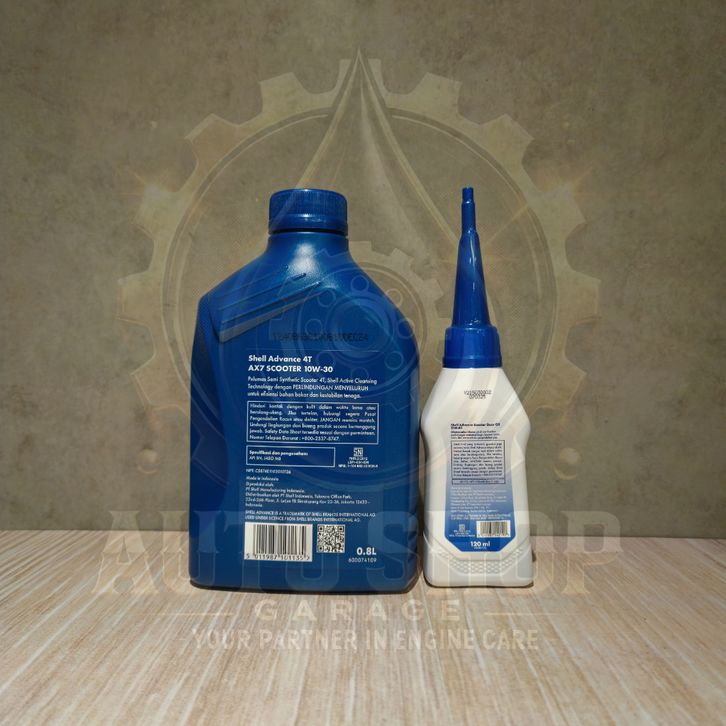 Paket Shell Advance AX7 Matic 10w-30 0.8 Liter & Shell Advance Gear Gardan 15w-40 120ml - Paket Oli