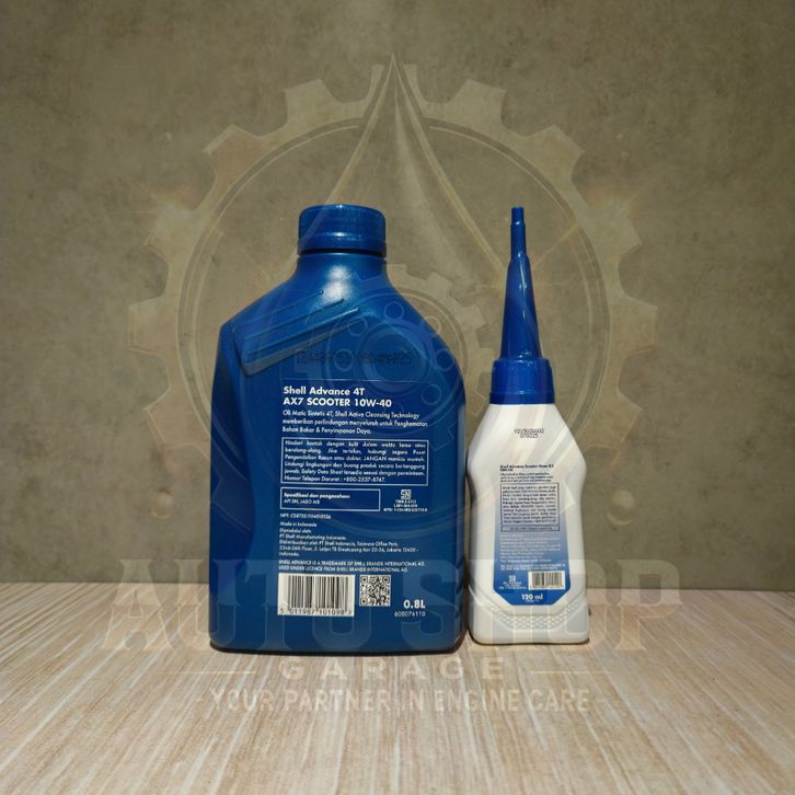 Paket Shell Advance AX7 Matic 10w-40 0.8 Liter & Shell Advance Gear 15w-40 120ml - Paket Oli Motor