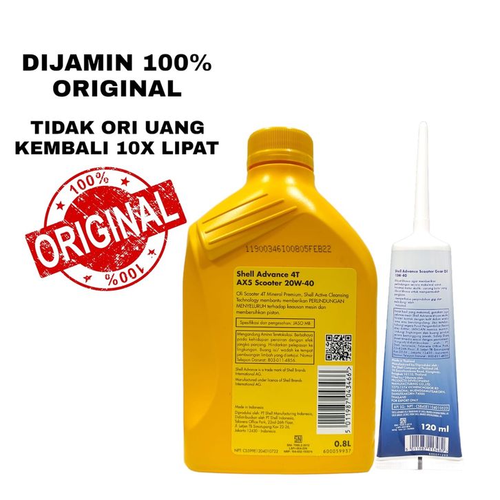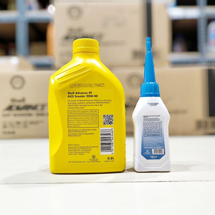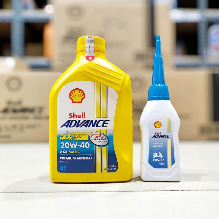PAKET OLI MATIC SHELL ADVANCE AX5 SCOOTER 0.8L 20W40 + SHELL OLI GEAR
