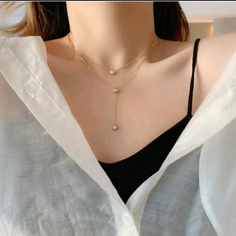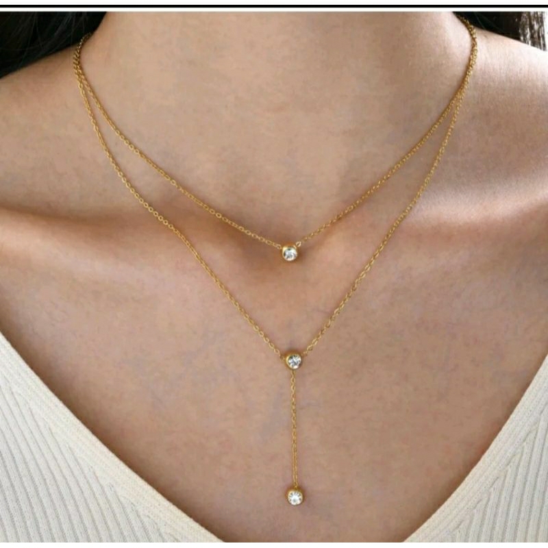 Kalung 2 Layer Titanium Gold Hijabers Trend Ootd N06092101