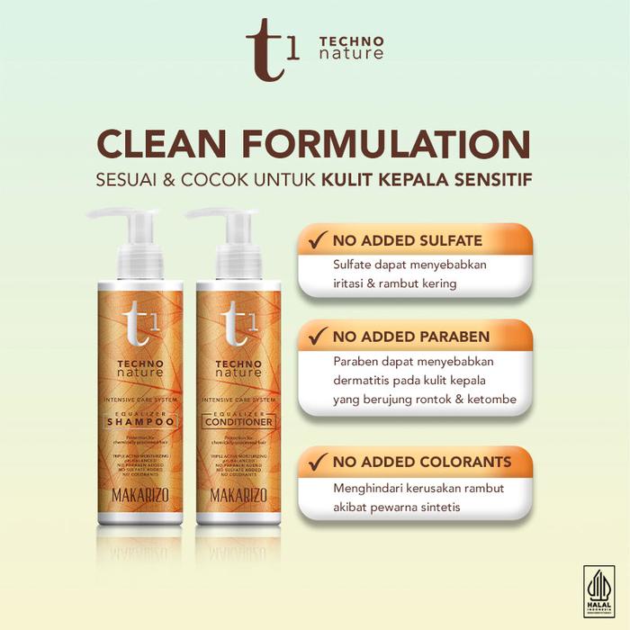 Paket Isi 2 Makarizo T1 Techno Nature Equalizer Shampoo & Conditioner 180 Ml - Shampo Conditioner Non Sls / Sampo Condit