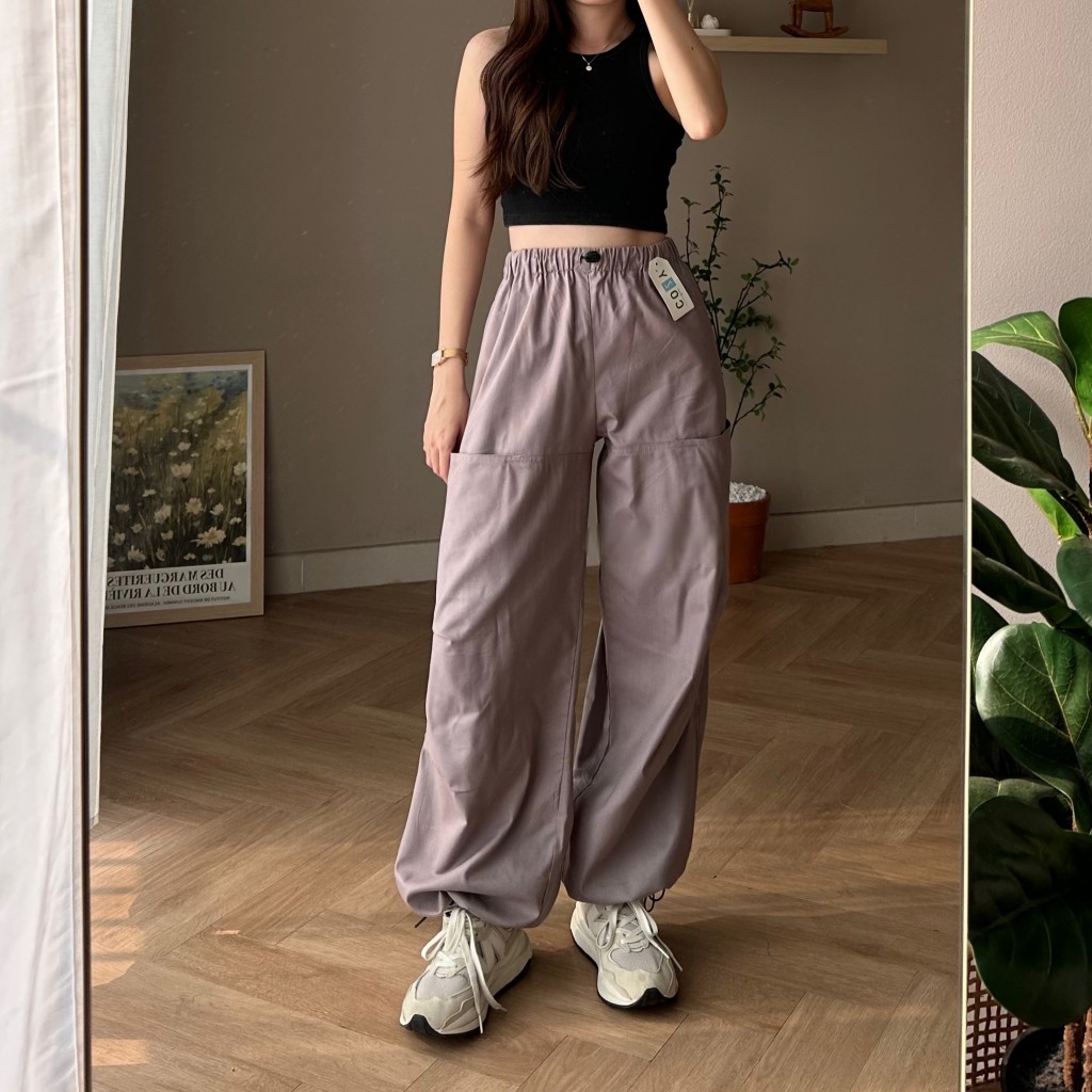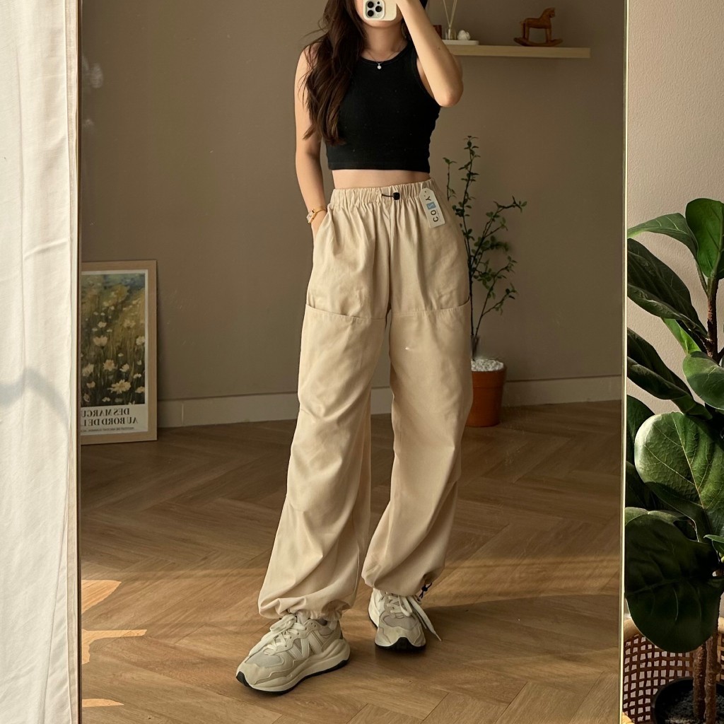 Jane Baggy Pants - Celana Kulot Jogger Cargo Serut Highwaist Chinos - Celana Kargo Wanita