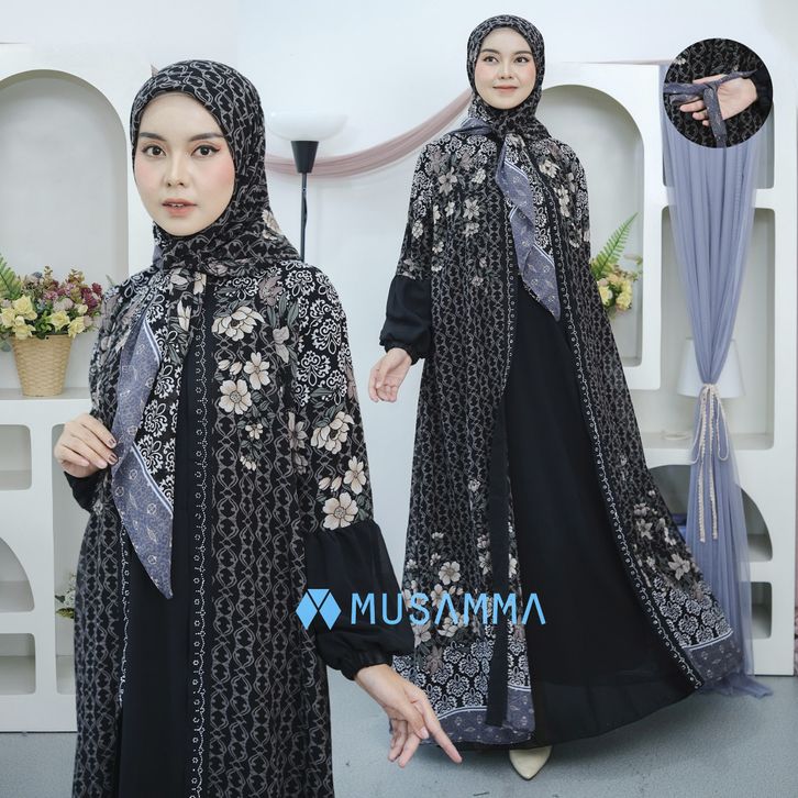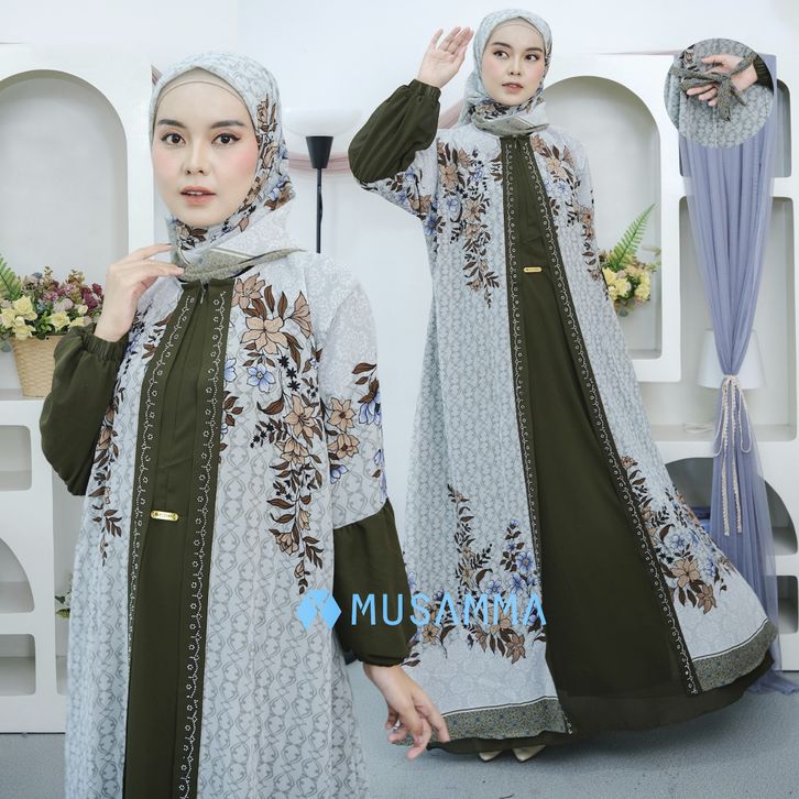amanda dress gamis ceruty mix ceruty print full furing busui dan wudhu friendly kerudung segi empat