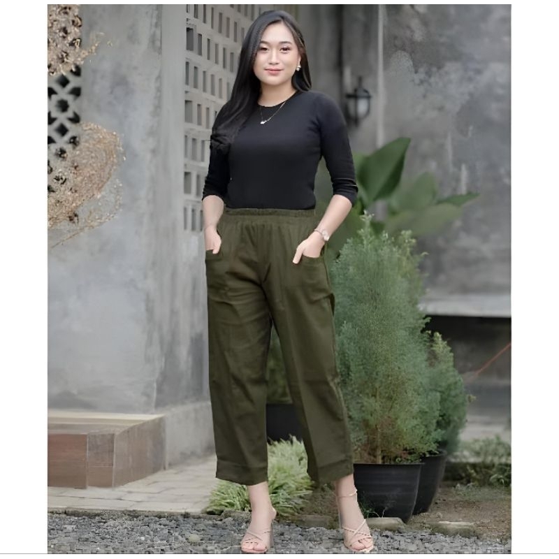 Celana Wanita Unicloo Korean Pants 7/8 Celana Wanita Korea Style Bahan Twill Combed Premium Stretch Tebal