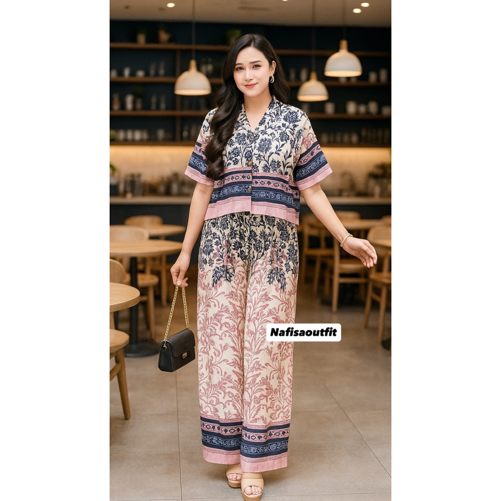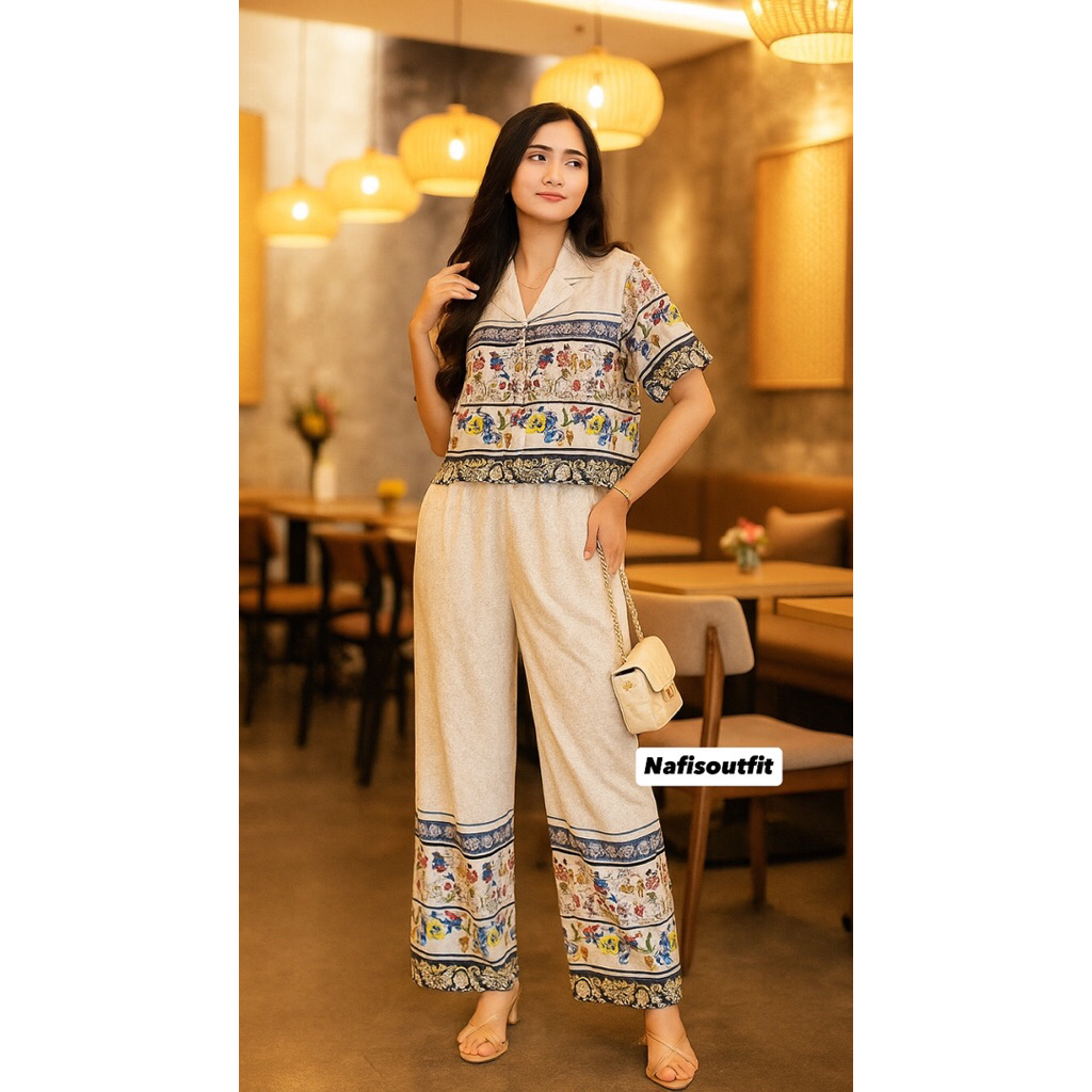 One Set Crop Setelan Celana Kulot Hightwaist By Nafisaoutfit