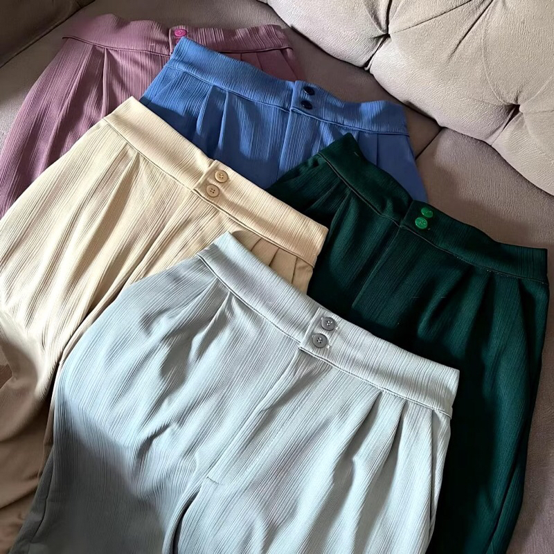 Celana Kulot Jennie Knit Pants Kancing 2 Resleting Loose Pants Wanita Higwhaist