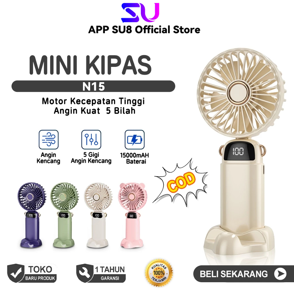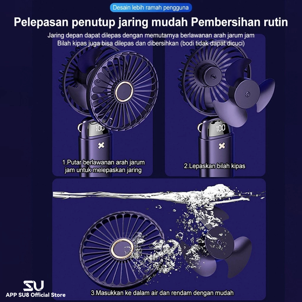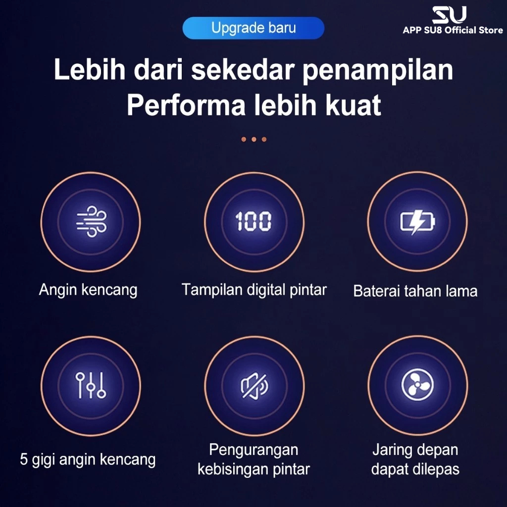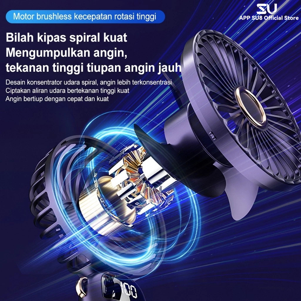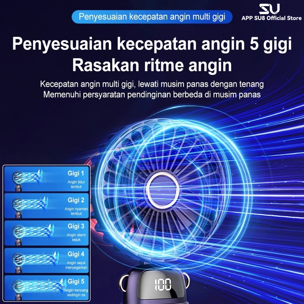 APP SU8 Kipas Angin Mini Portable Usb 20000 mAh Kipas Lipat / Kipas Kecil Portable Led/Leher 5-Speed Wind LED Display
