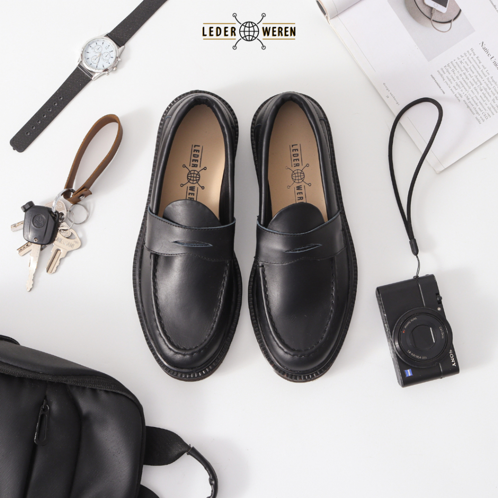 LEDERWEREN LEDER LOAFER 3 - SEPATU PANTOFEL LOAFERS PRIA HITAM – SLIP-ON FORMAL NYAMAN | KERJA KULIAH UNDANGAN