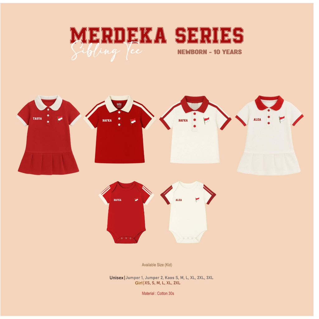 Fufaru - Merdeka Sibling Series Cotton 30s Newborn sampai 11 Tahun Kaos Dress Kemerdekaan Couple Anak Cowok Cewek