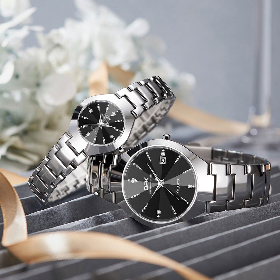 [Star] JAM TANGAN COUPLE OPK ANTI AIR ORIGINAL ANALOG KOREA KECIL RANTAI STAINLESS STEEL KALENDER CASUAL AESTHETIC HITAM