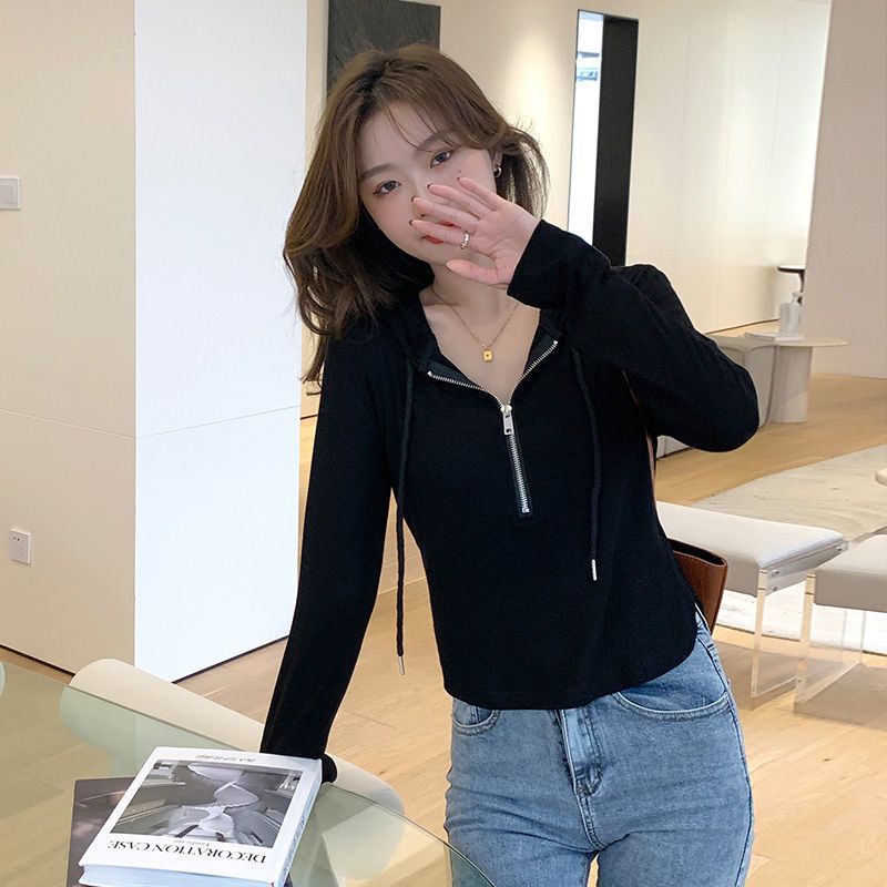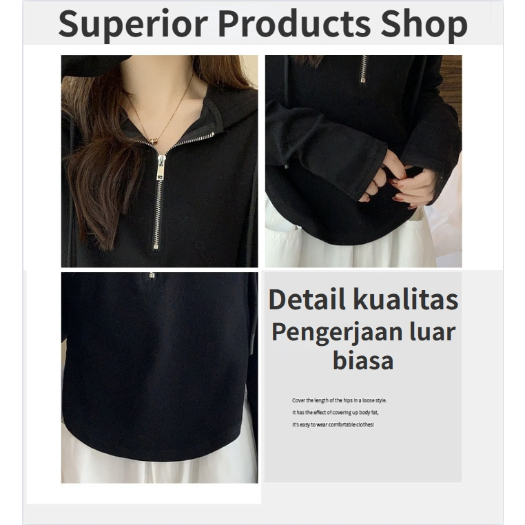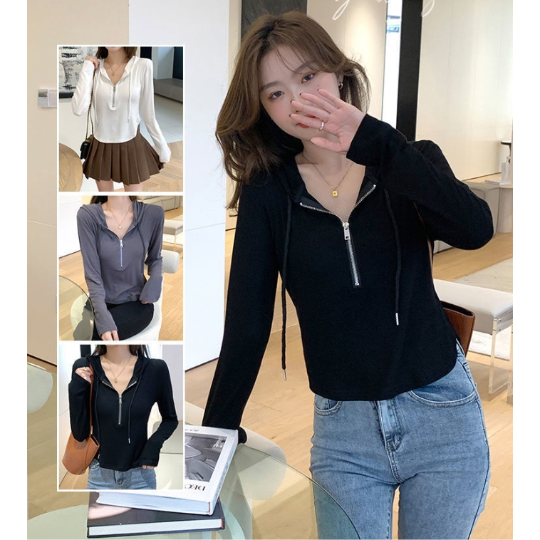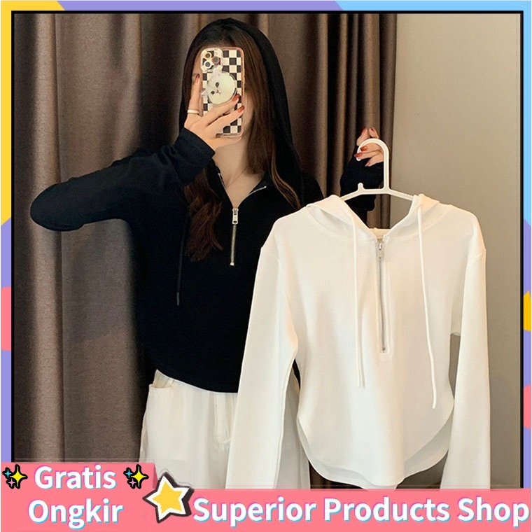 Baru Hoodie Jumper wanita bagian tipis setengah ritsleting lengan panjang atas - Vada Colar Crope Korean Style