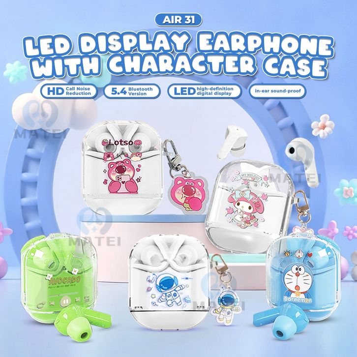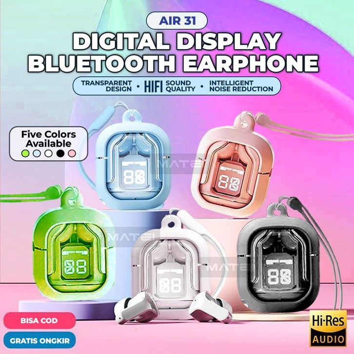 Matei Headset Bluetooth Wireless Air31 Earphone In Ear Noise-Cancelling Bluetooth Bass Stereo Hifi Led Display Headphone