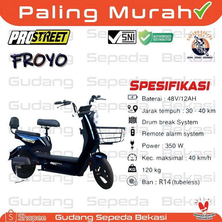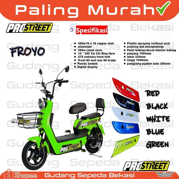 SEPEDA LISTRIK PROSTREET - FROYO 350 WATT GARANSI RESMI ORIGINAL