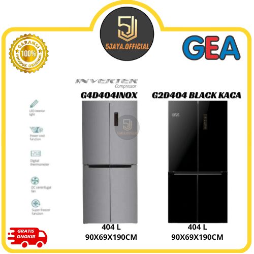 PROMO Kulkas Gea Side By Side 4 Pintu - G4D404INOX/G4D404BLACK KACA ORIGINAL