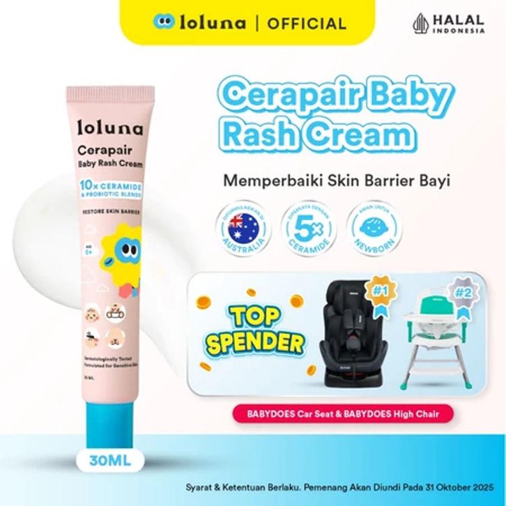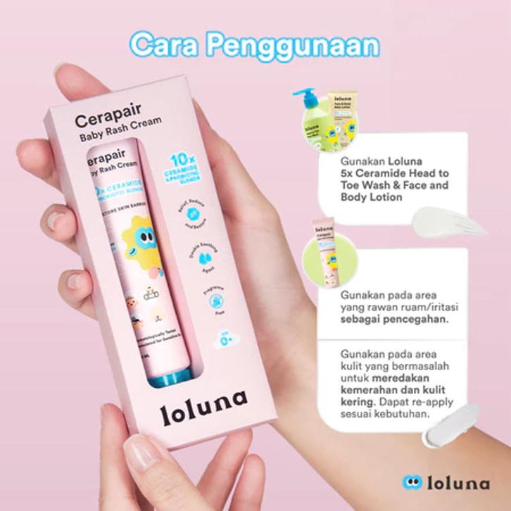 Loluna Cerapair Baby Rash Cream 30ml - Krim anti ruam, iritasi dan gatal gigitan serangga untuk bayi dan anak