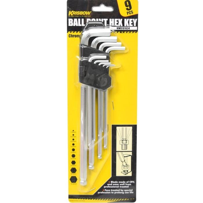Krisbow Set Kunci L Hex Ballpoint 1.5-10 Mm 30 Cm 9 Pcs