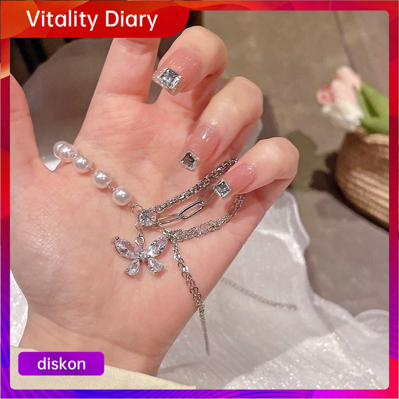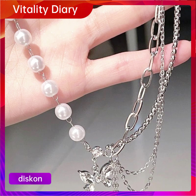 【❤️】Kalung Mutiara Wanita Kupu-kupu Zirkon Kalung Rumbai Kualitas Tinggi Wanita Kalung Manik Manik Aesthetic Choker Rant