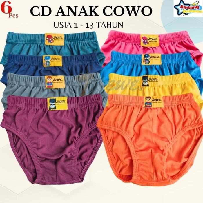Grosir 12 Pcs Clana Dalam Anak Cowo Warna Terang -Celana Dalam Anak Laki Cd Anak Sempak- Cd Anak Cowok Size S M L & Xl S