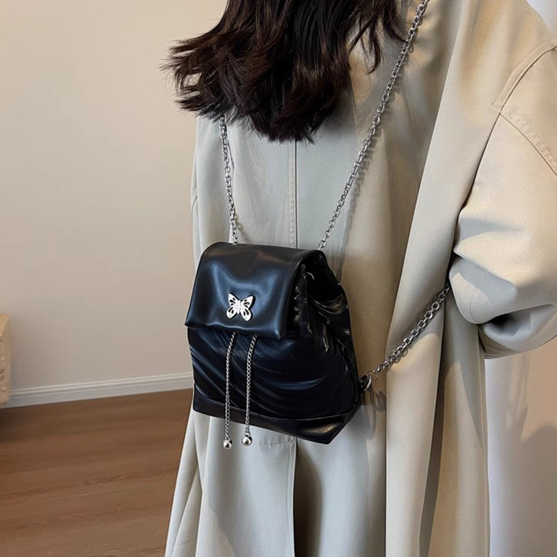 Tas Ransel Wanita Korea Style Slingbag Ringan dengan Tali Rantai dan Motif Kupu-Kupu untuk Daily Use atau Travel DMTS154