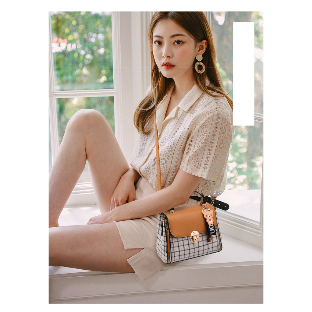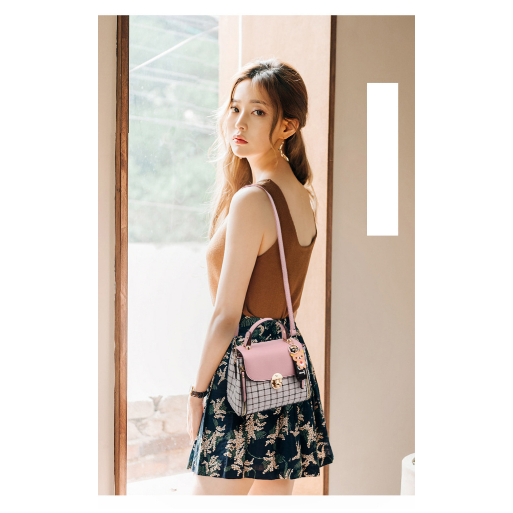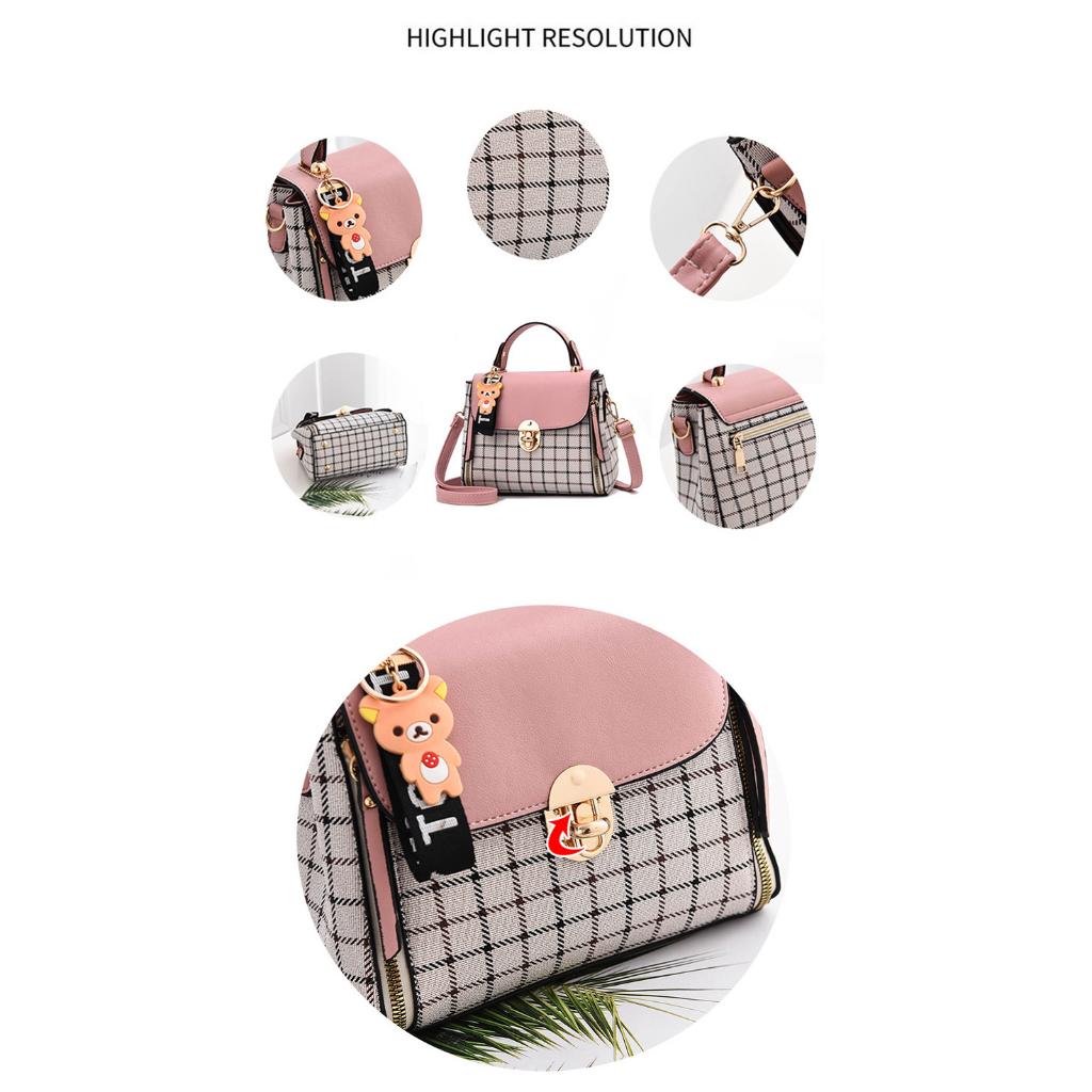 Fashion Tas Wanita Sling Bag Kotak-kotak 2023 Tas Selempang Kulit Wanita Tas Bahu Mini Casual Tote Bag Women