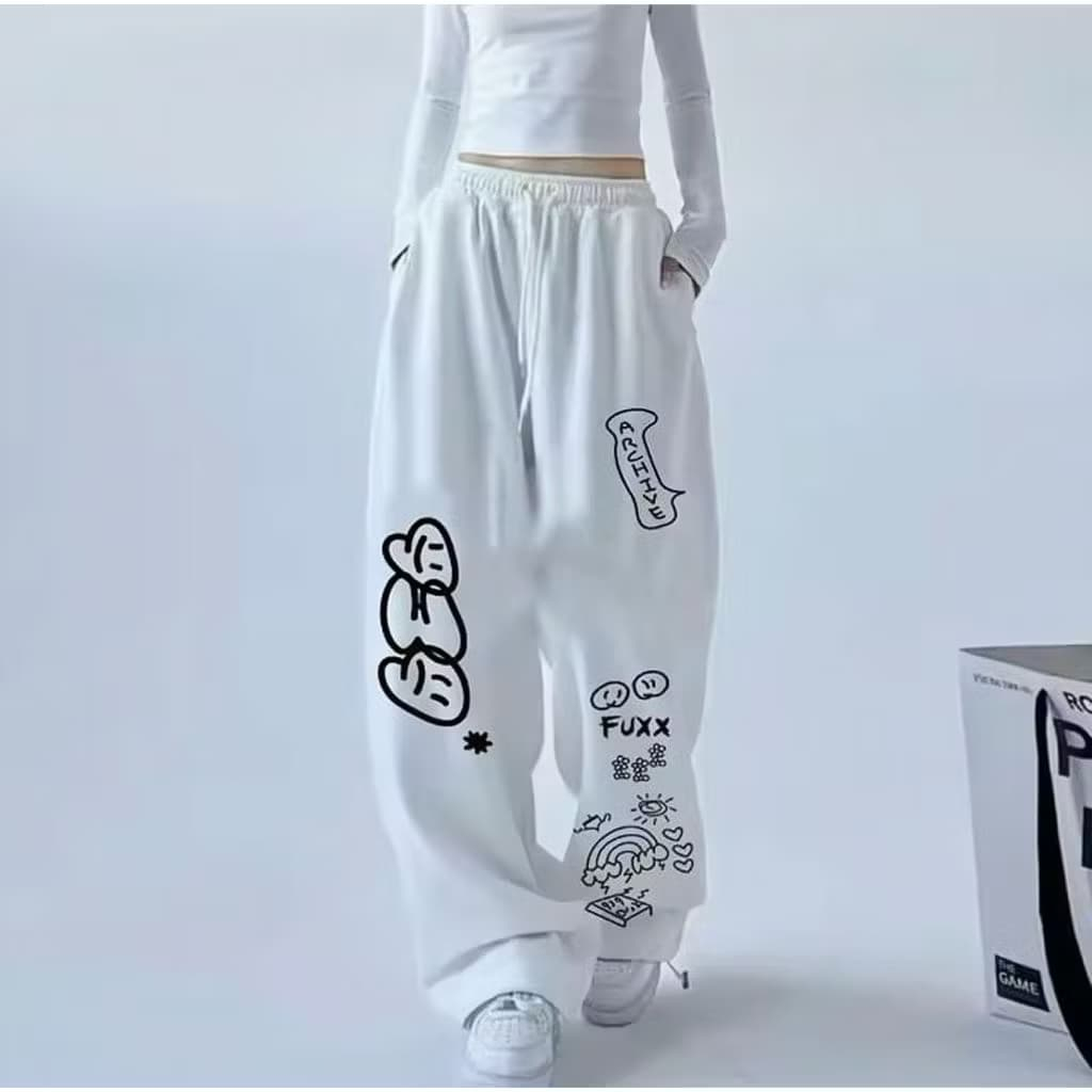 Archive Baggy Pants Celana Kulot Longgar Printing Style Korean Y2K Motif