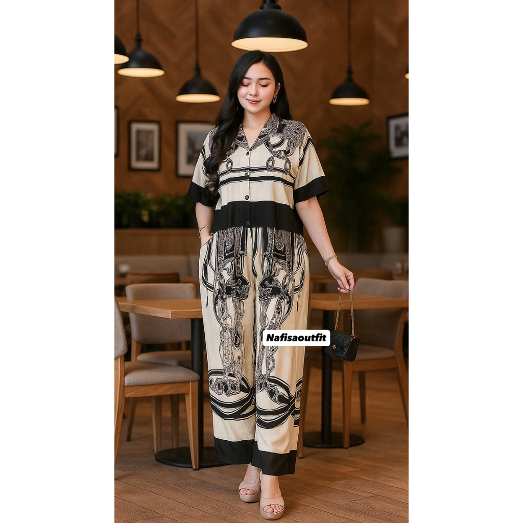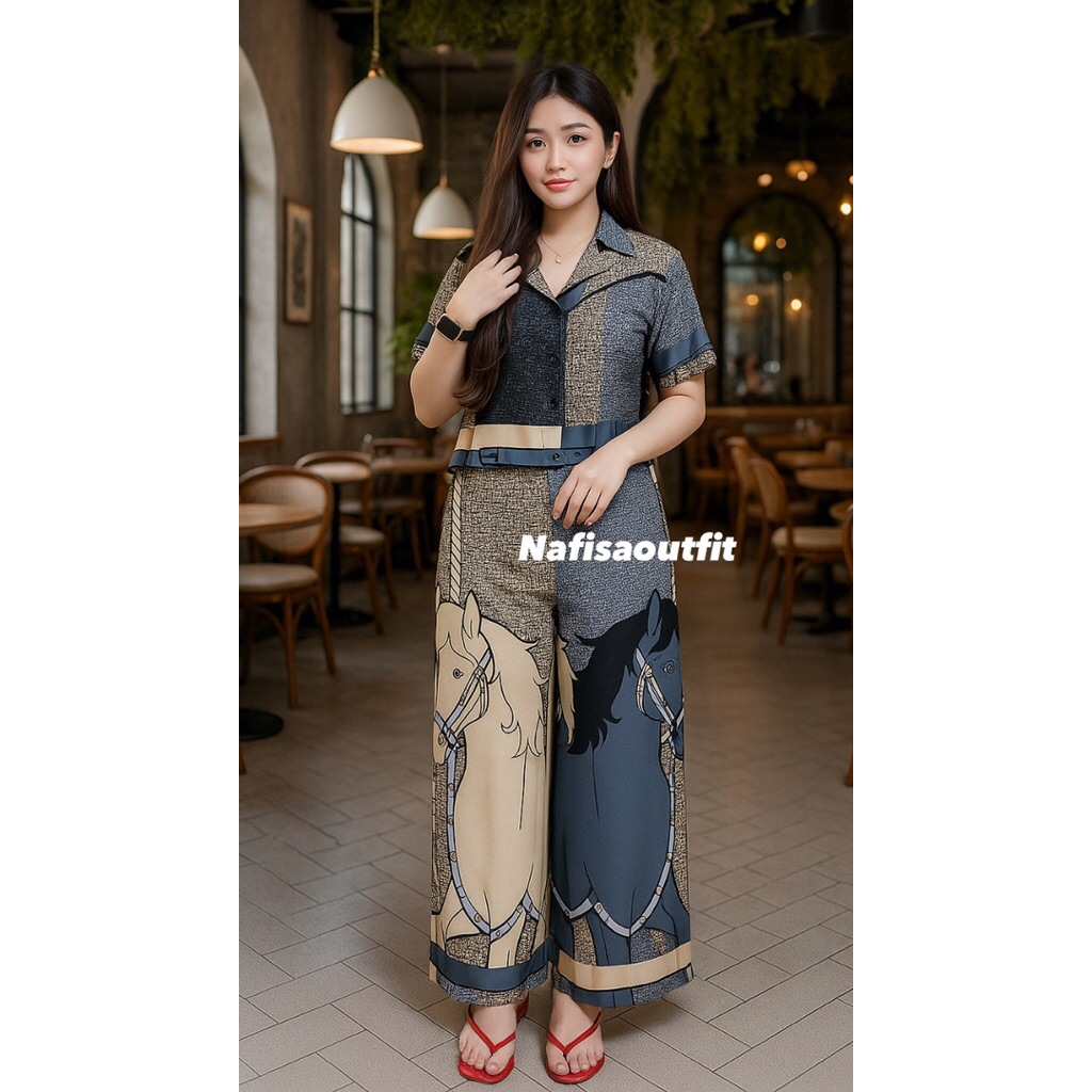 One Set Crop Setelan Celana Kulot Hightwaist By Nafisaoutfit