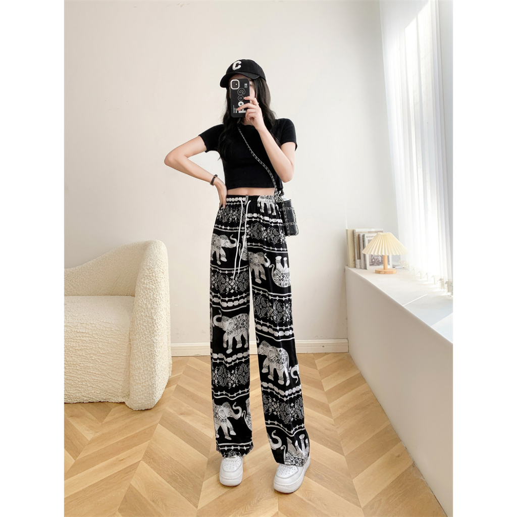 ONEFASHIONMALL CW017 Celana Panjang Kulot Wanita Motif Batik Salur Highwaits Long Bawahan Santai HW