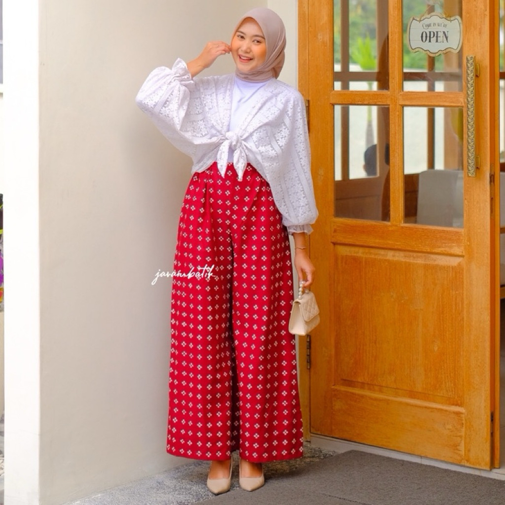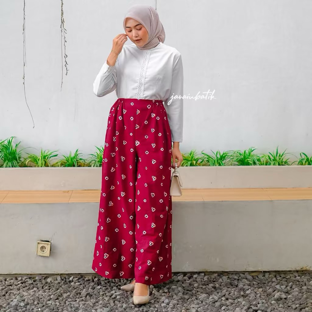 JUMBO CELANA KULOT BATIK MERAH PUTIH OUTFIT KEMERDEKAAN KULOT PALAZZO WANITA DEWASA