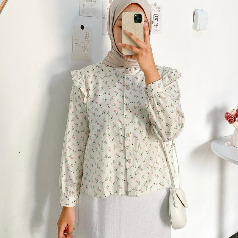 Baju Blouse / KOREAN BLOUSE / FLORAL BLOUSE / BLOUSE MOTIF BUNGA / KEMEJA MOTIF BUNGA