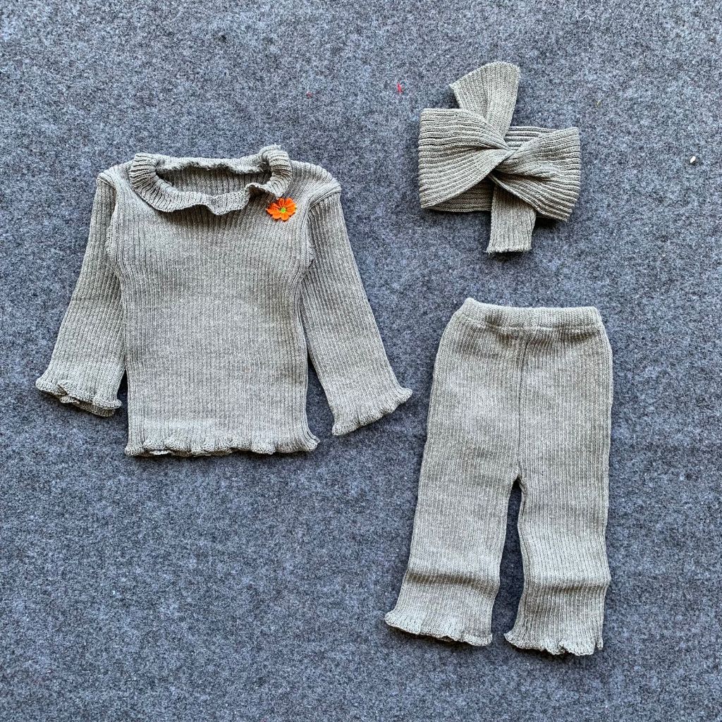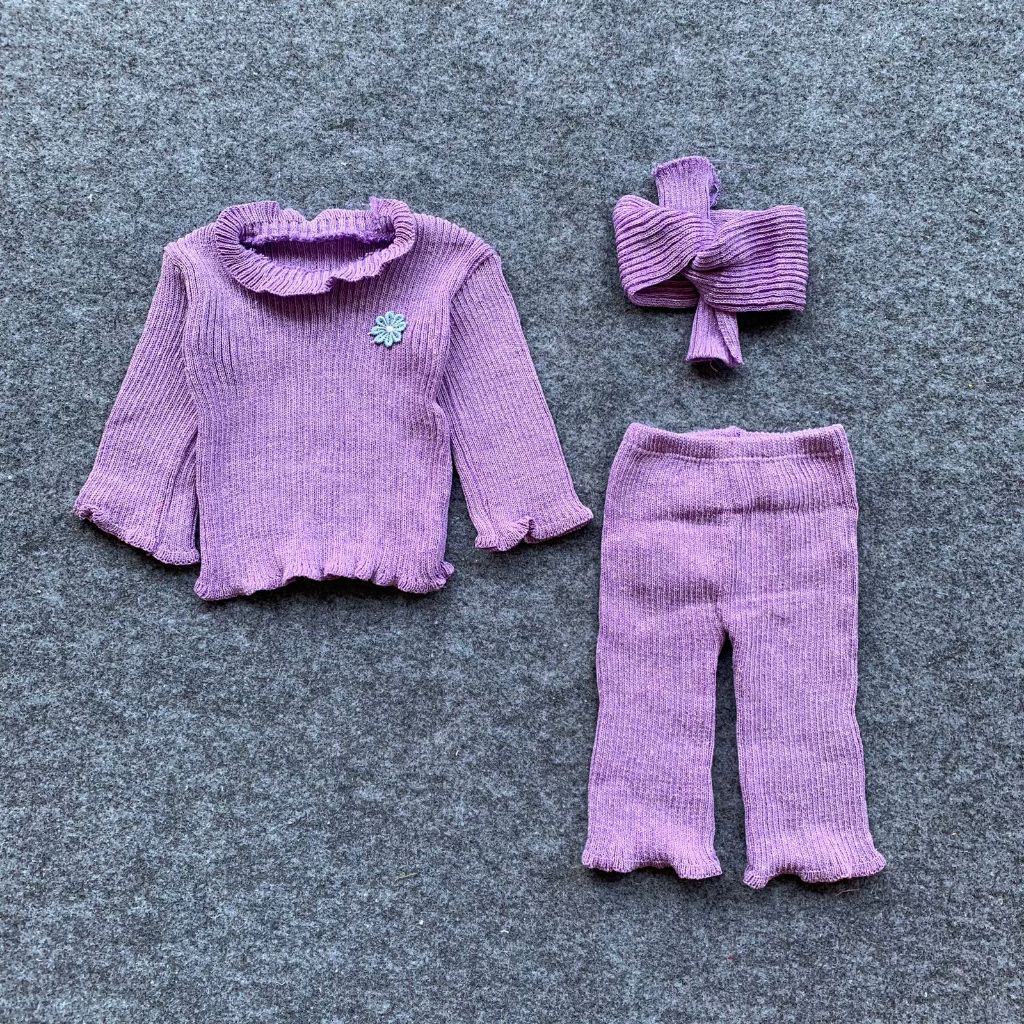 Paket Hemat Newborn 3in1 Setelan Rajut Baju Celana Bando Bayi Usia 0-12 Bulan Paket Kado Lahiran