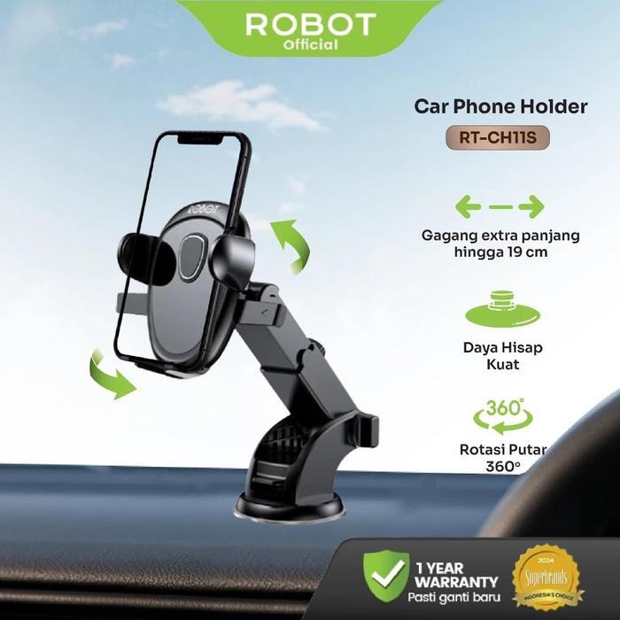 Robot Universal Car Holder Rt-Ch11S 360 Rotable For Smartphone Car Stand Holder - Garansi Resmi 1 Tahun [ Bisa ] Stand