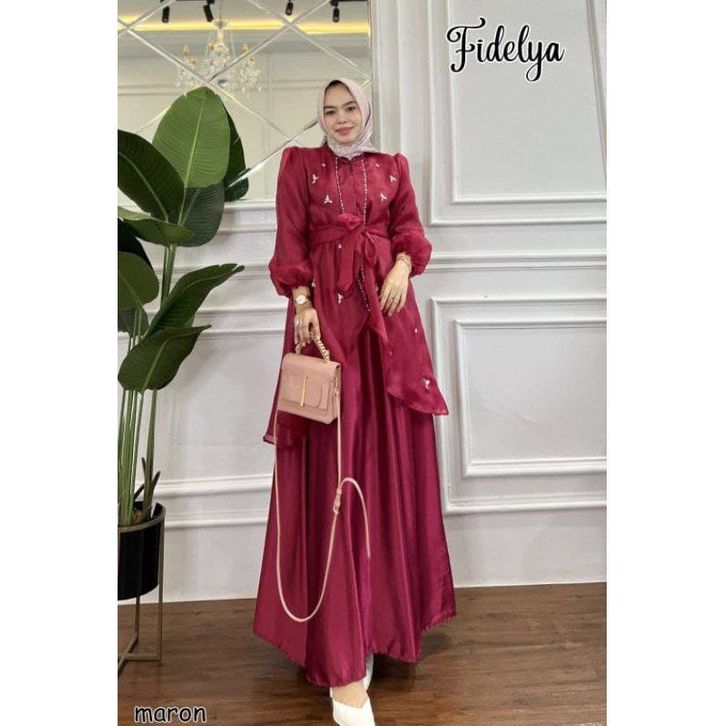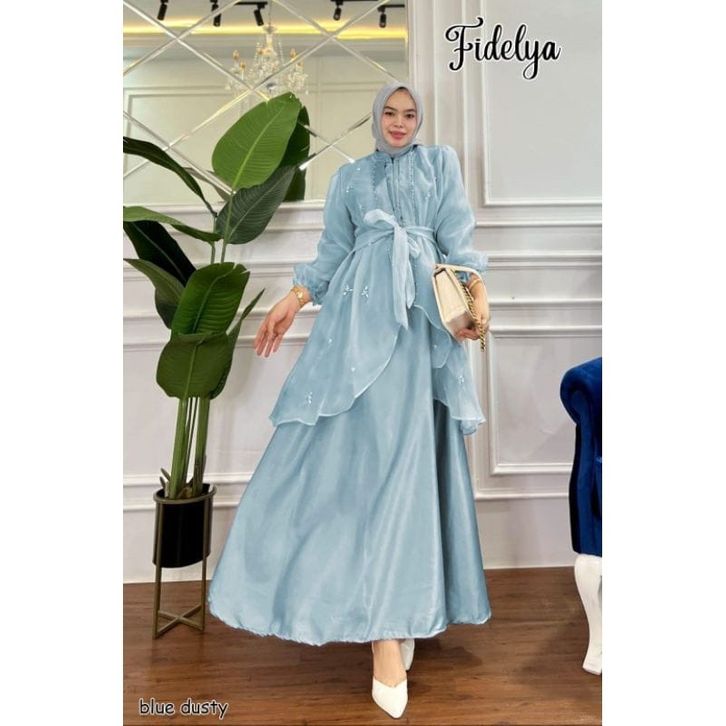 gamis pesta organza - gamis fidelya payet lamaran nikahan tunangan