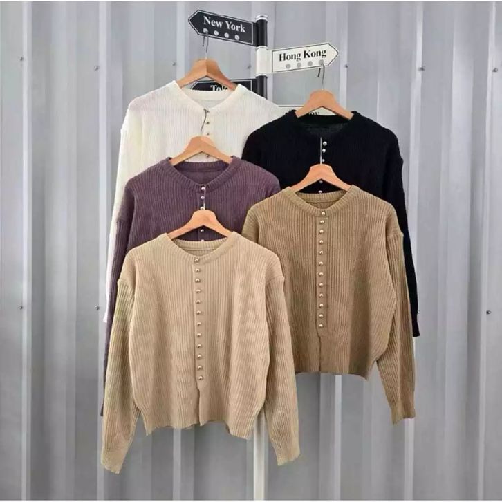 Cardigan Wanita Yura Basic Knitwear Series Rajut Premium Cardigan Korean Style Motif Polos Kancing Lengan Panjang Murah