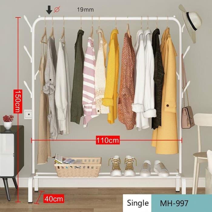 Rak Gantungan Baju Stand Hanger Jemuran Pakaian Bahan Besi - Double 995 Hitam