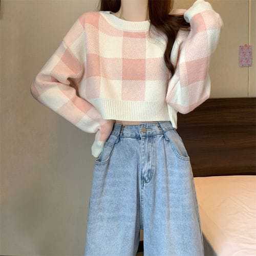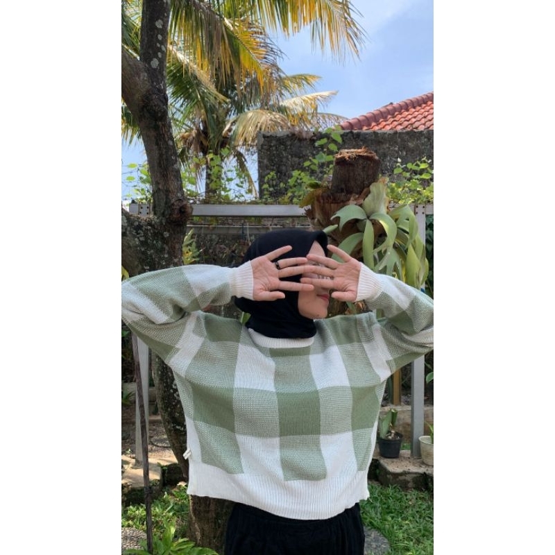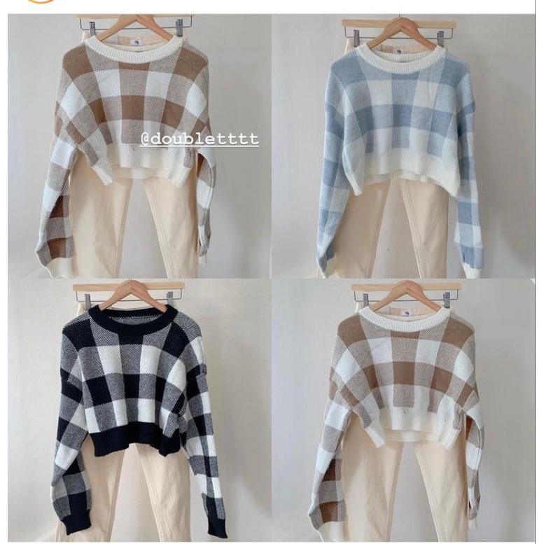 Sweater Jenni Crop Kerean Wanita Rajut Tebal All Size
