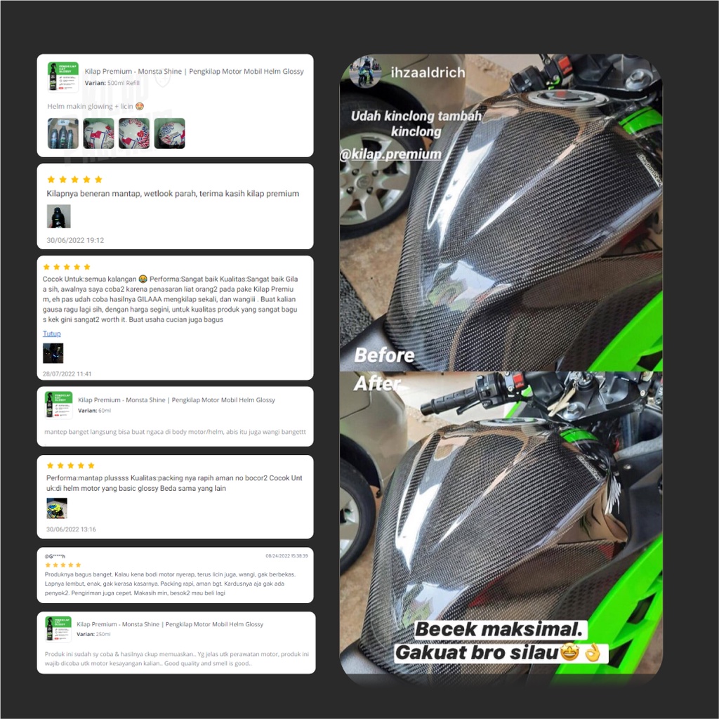 Paket Glossy Monsta Shine 400ml + Ultimate Microfiber 400GSM | Kilap Premium - Pengkilap Kendaraan Cat Glossy Motor, Pen