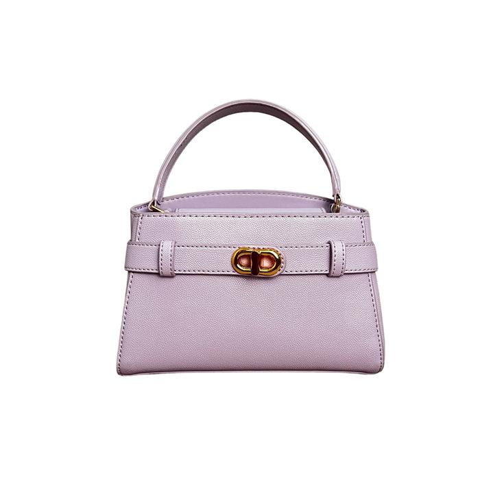 [Free Paperbag] Aubrielle Metallic-Buckle Top Handle Bag Kulit Jastipan.Th - Taupe Canvas, Small